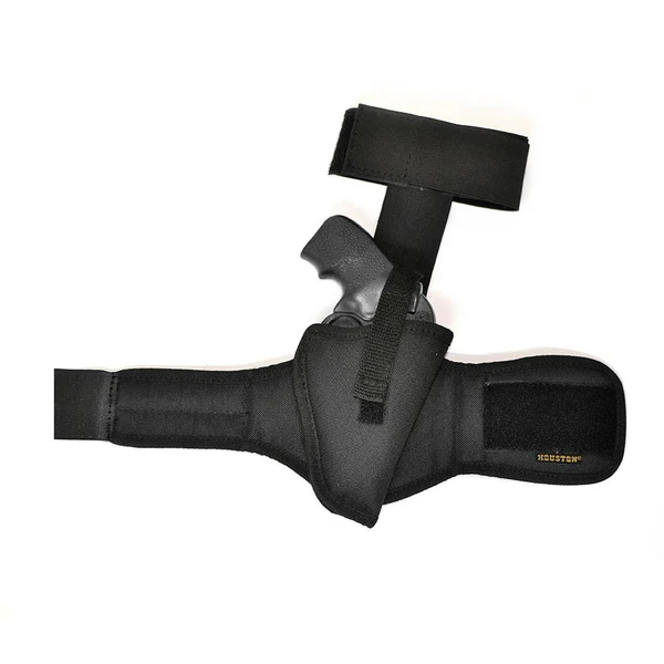 This ankle holster makes it easy to carry a small to medium framed firearm concealed under your pants leg. Its ankle band and upper strap are made from a soft knit fabric for comfort, and provide a secure, movement-free fit. Closed cell foam padding on the holster back protects your ankle from the weapon striking it, and also acts as a sweat guard that prevents damage to the firearm’s finish Available in Nylon or Eco leather.